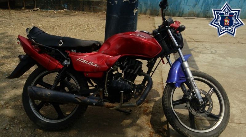 EN ACCIONES DE SEGURIDAD, POLICÍA ESTATAL IDENTIFICA Y ASEGURA UNA MOTOCICLETA CON ALTERACIONES EN TUXTEPEC