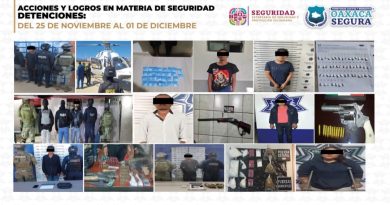 En cuanto a la vigilancia del cumplimiento de la Ley Federal de Uso de Armas de Fuego y Explosivos, se identificaron y retiraron 12 armas de fuego, ocho cargadores y 92 municiones de distintos calibres; en tanto que cuatro dosis de presuntos enervantes y estupefacientes como heroína, cristal y marihuana, fueron decomisadas.
