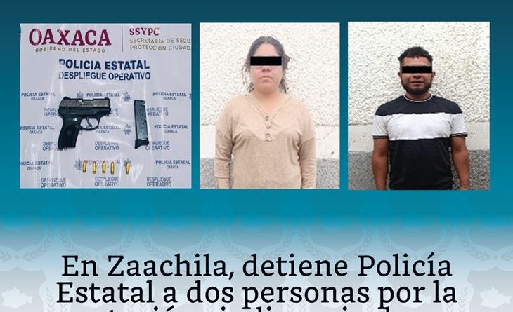 DETIENE POLICÍA ESTATAL A DOS PERSONAS POR PORTACIÓN DE ARMA DE FUEGO EN VILLA DE ZAACHILA