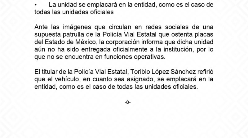 ACLARA POLICÍA VIAL ESTATAL PROCESO DE ASIGNACIÓN DE PATRULLA